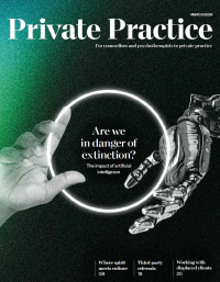 My main concern – which is shared by many colleagues – is the impact of AI on our ability to form and maintain relationships. Irrespective of our modality, most would agree that the therapeutic relationship is one of our key tools. On BBC One’s Morning Live recently, I spoke of how a key part of my work is to challenge clients to expand their window of tolerance and empower them to have resilience in relationships. Relationships are inherently complex and messy, yet also rewarding and life-giving. The frictionless life enabled by digital applications does nothing to prepare us for relationships in real life. As Perel comments: ‘We are in some way planning our own extinction. With predictive technologies that are presenting a life that is basically frictionless, you forget that relationships, and people, by their very nature, are unpredictable and imperfect.’10