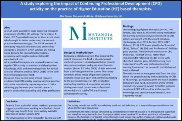 Welcome to the BACP Research online poster exhibition. For more than 25 years the BACP annual research conference has supported researchers at all levels in disseminating their work. Alongside this year’s online event, we wanted to give a flavour of the conference experience in terms of variety of research and types of presentation.